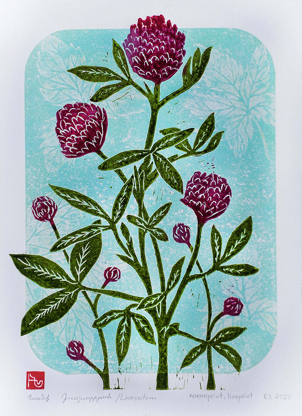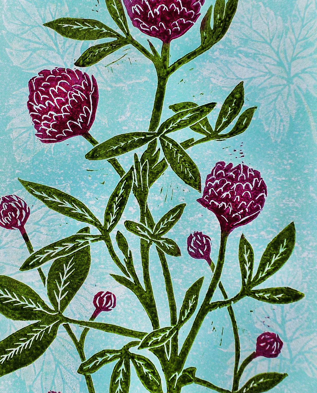 Type: hand printed, oil-based ink, linoprint, monoprint